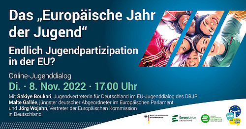 Bringen Sie Ihre Anliegen und Fragen ein bei unserem Online-Jugenddialog "Das "Europäische Jahr der Jugend" – Endlich Jugendpartizipation in der EU?" am 8. November um 17 Uhr und treten Sie in den virtuellen Dialog mit Sakiye Boukari, Jugendvertreterin für Deutschland im EU-Jugenddialog des DBJR, Malte Gallée, jüngster deutscher Abgeordneter im Europäischen Parlament, und Jörg Wojahn, Vertreter der Europäischen Kommission in Deutschland. » weiterlesen